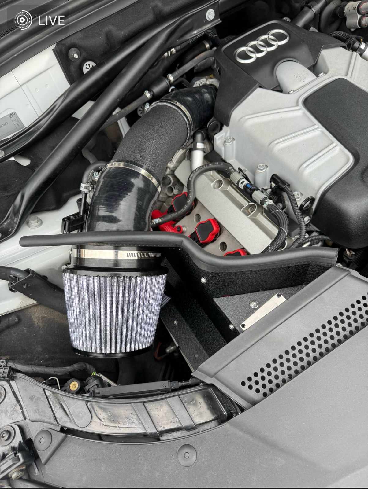 Delivering cold air effectively for power takes more than just an open filter. Employing velocity stack technology like that found in professional Motorpsorts and designing it specifically for the 3.0T engine, efficiently channels air as quickly as possible. The velocity also functions as a solid mount for the air filter which means no intake pipes rattling or rubbing on heat shields.