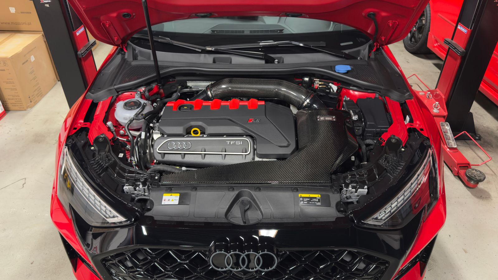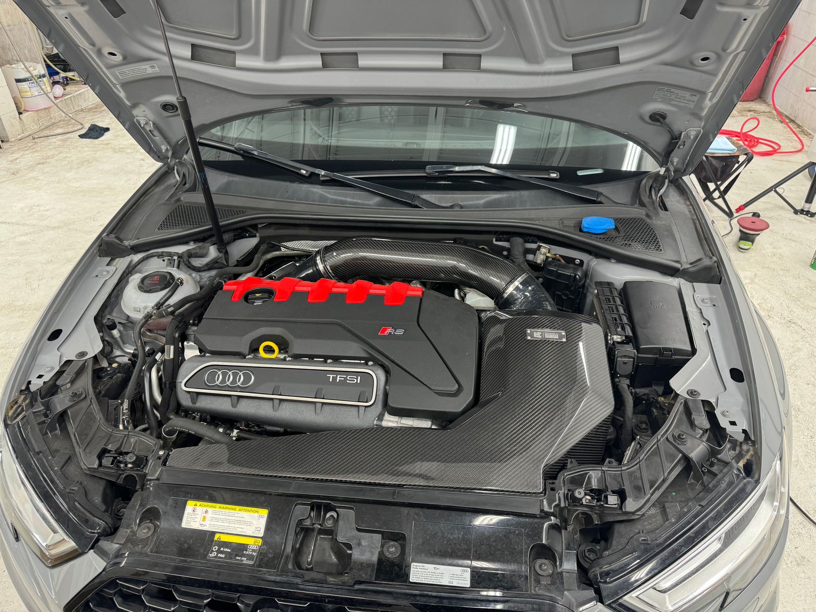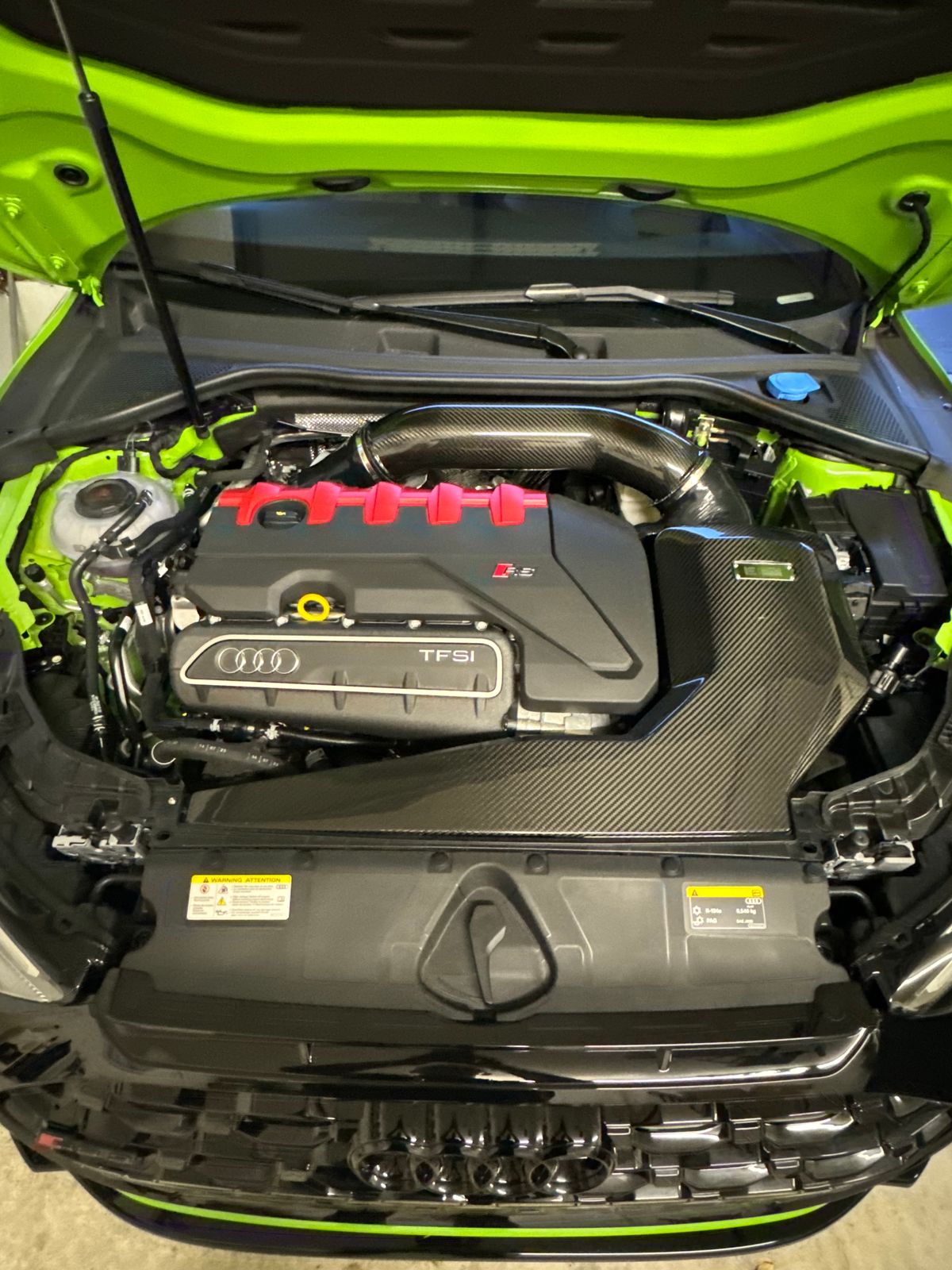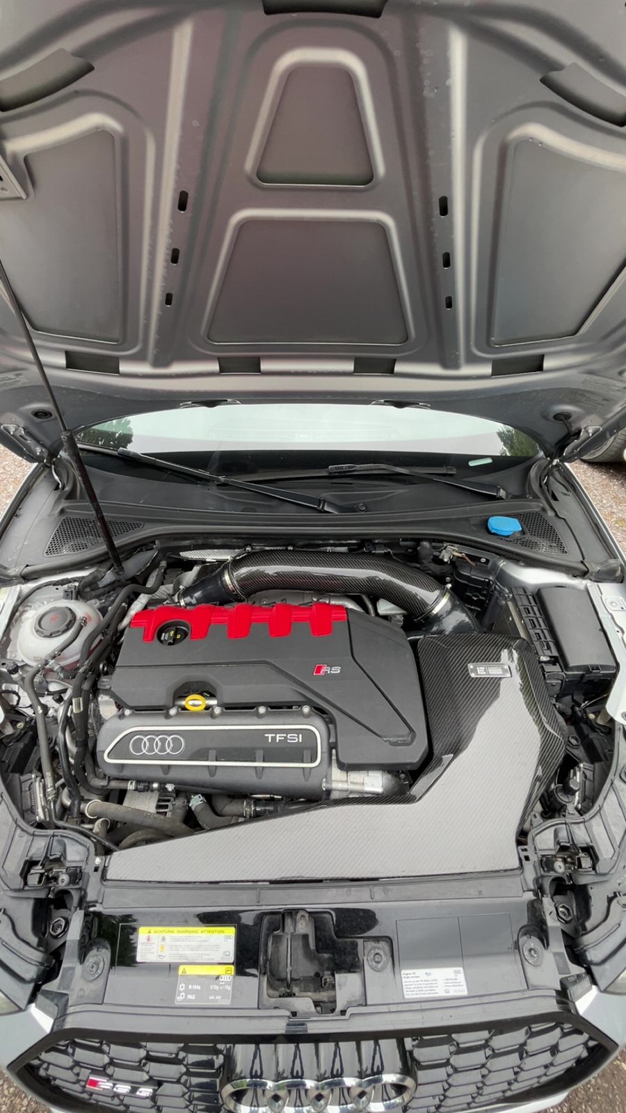 IE set out to produce the highest performing air intake for the RS3 and TTRS DAZA 2.5T cylinder turbocharged engine available. Extreme design measures were employed with a "no-corners-cut" attitude and no expenses spared. A massive air filter, built-in velocity stack, carbon fiber construction, large internal volume, and 4-inch piping diameter ensure the engine breathes sufficiently for any power setup and produces large power gains across the entire powerband.