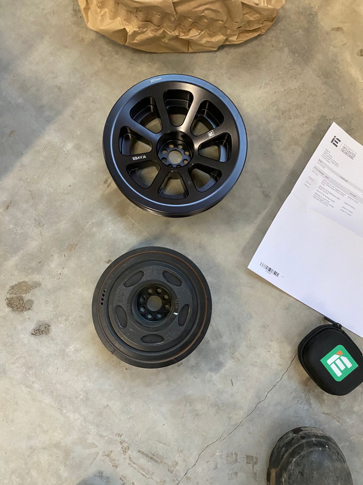 IE's 207mm crank pulley delivers a 3.2753 supercharger ratio similar to a traditional dual pulley setup that uses a combined smaller 57.5mm supercharger pulley with a larger 188mm crank pulley (3.2695 SC ratio). This pulley allows the use of a dual pulley ECU tune without the need to purchase multiple pulleys and press off/on a new supercharger pulley for a faster and easier installation process.