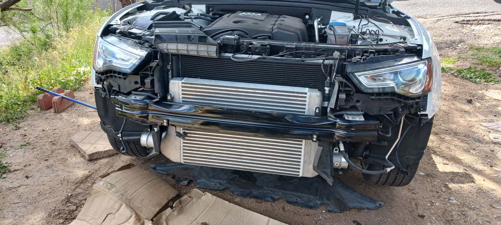 Vehicles equipped with Audi's dynamic steering systems include a large cooling loop mounted to the front of the radiator. This cooling loop does not allow installation of the IE intercooler and will have to be deleted or modified to allow fitment. At this time we do not officially support this application.